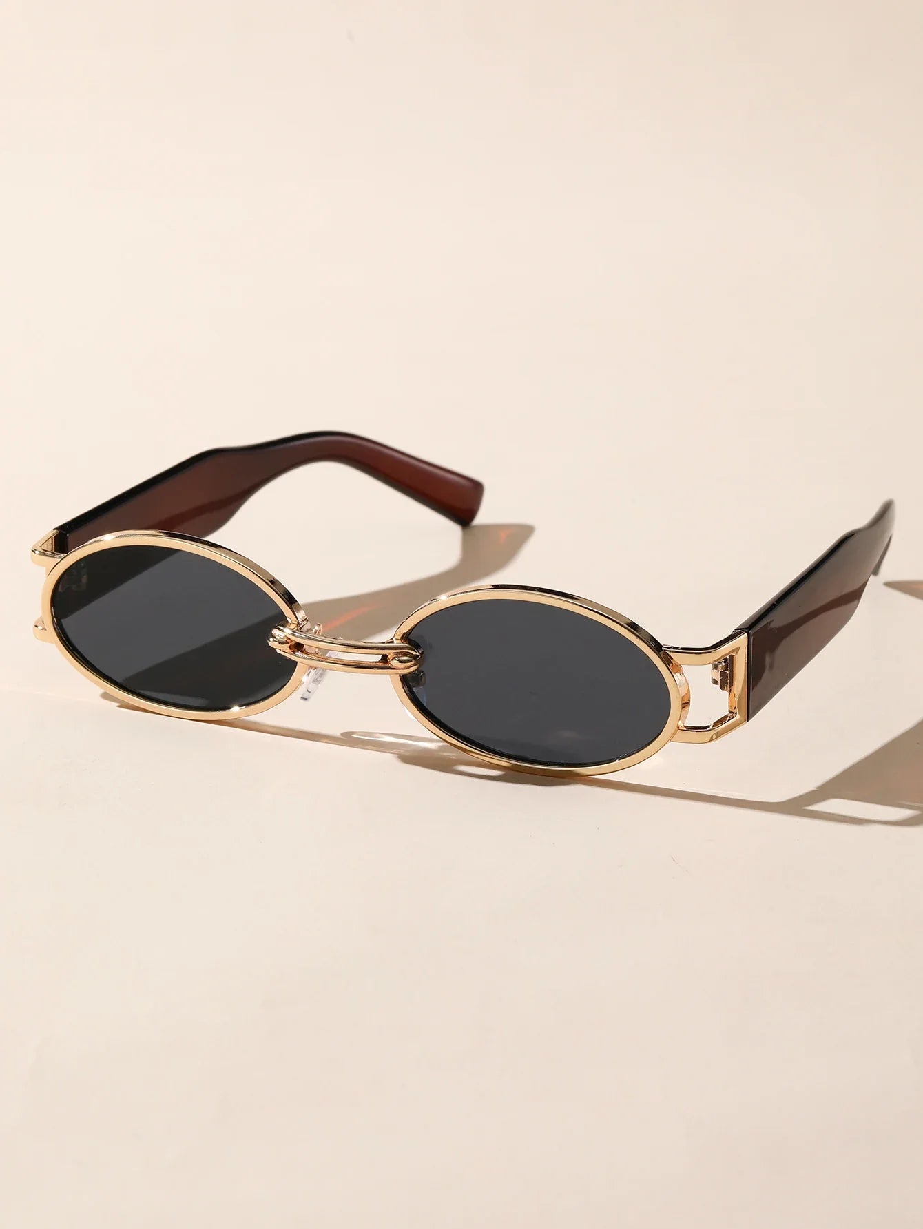 Step into timeless style with these vintage-inspired oval sunglasses, framed in a sleek gold-tone rim that screams old-school cool. With their minimalist design and dark tinted lenses, they're the perfect blend of classic charm and modern flair.